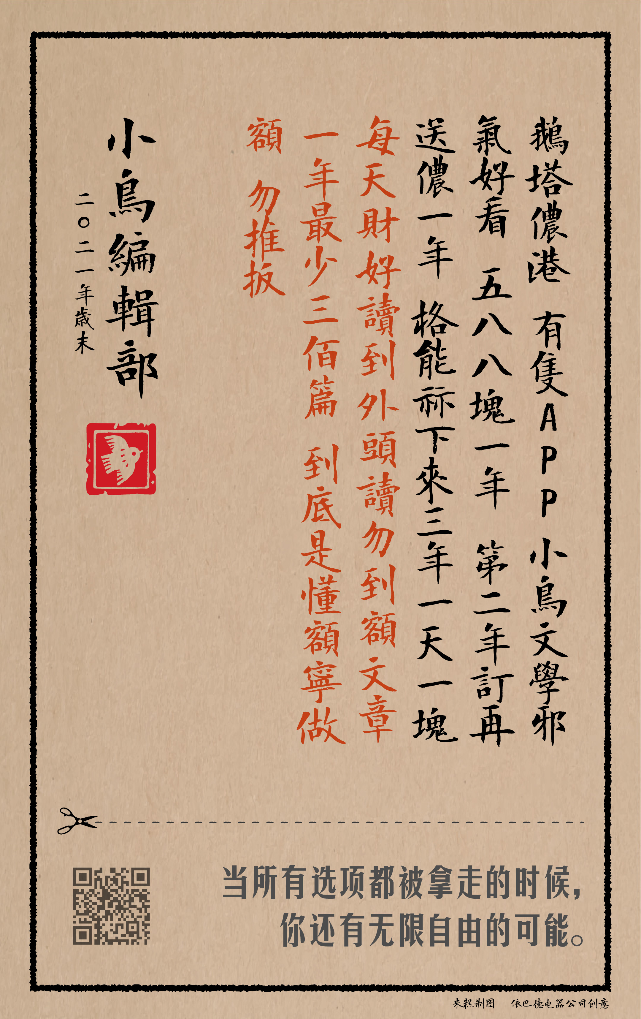 因内容过多,下篇将于 2 月 16 日在《小鸟文学》卷十四发布。