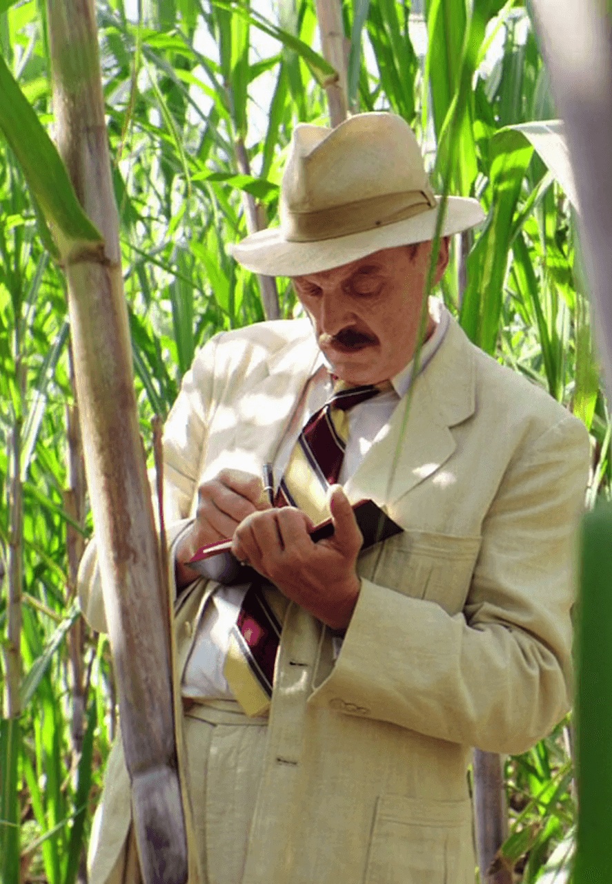 点燃今天的第一支雪茄,他走出散发着霉味的小木屋,沿绣球花杂生的陡峭台阶而下,穿过马路,走进优雅咖啡馆(CaféElegante)。在那里,他坐在一群黑皮肤的骡夫中间,花了半便士享用美味的咖啡,和同他合得来的老板练习葡萄牙语。这并非易事,因为他的西班牙语总是跳出来碍事。之后,他又重新登上那些台阶,在兼作客厅的游廊里坐着工作好几个小时,时不时抬起头,越过棕榈树翠绿色的扇形叶子望向壮美的马尔山脉。比他小 27 岁,曾做过他秘书的洛特,就在不远处校正他那部关于国际象棋的短篇小说,女仆正在室内努力对付冒烟的炉子。