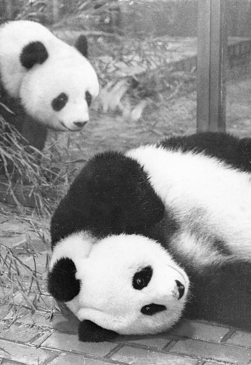 美国总统访问北京的决定是被称为“尼克松冲击”的两大事件之一,由白宫推出的新举措重新界定了短短几个月后日本在全球空间中的角色。第二个事件于 1971 年 8 月到来,尼克松宣布他的政府会对进口商品加征 10% 的附加税,与此同时放弃金本位,以应对渐趋恶化的收支平衡局面。这个举措从根本上终结了二战以来支撑全球资本主义的布雷顿森林体系,导致了日元如火箭冲天般升值,先前稳定在差不多 1 美元兑 360 日元的有利利率上,而现在是 1 美元兑 300 日元。日本以美国为主导的出口驱动型经济陷入短暂的混乱之中。康康和兰兰就正好是在这些事件与 1973 年全球“石油危机”——当时通往中东的石油通道出现问题——之间的时间段到来的。这对“乖萌”的“国家级 VIP 贵宾”,也是动物园喜见的一长串动物外交官名单中最新也最受欢迎的一对——作为急需的分散注意力的消遣和国家被孤立的担心烟消云散的信号,受到媒体和公众的热烈欢迎。