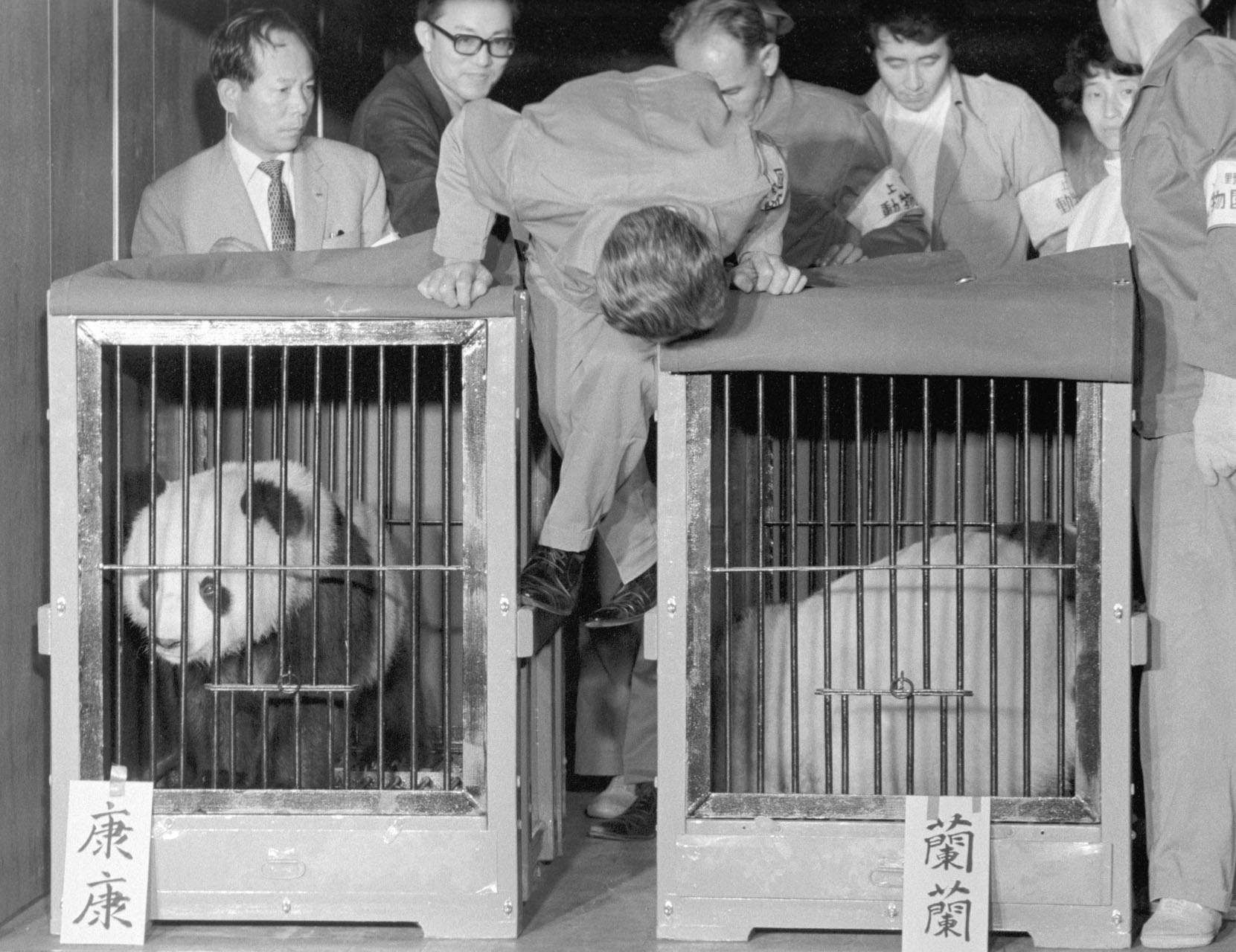 10 月 6 日,随着官方正式宣布熊猫将落户上野动物园,种种猜测才平息下来。“因为熊猫是中国人民送给日本人民的礼物,”动物园园长浅野在接受《朝日新闻》的采访时说,“我们的目标是要将熊猫安置在一个最有可能被最多人看到的地方。”他宣称上野动物园作为这个国家最大的(就收藏动物规模而言)也是访问量最多的动物园,无疑是这种考虑的最佳选择。这对上野动物园来说是一次重要的胜利,因为当时的上野动物园因为城市中心地带的位置和相对较逼仄的动物笼舍空间,正越来越多地承受着来自日本动物爱护协会(JSPCA)这类组织通过媒体发出的批评与指责。古贺忠道和东京动物园协会的其他成员,还有包括盟军最高统帅的妻子琼妮·麦克阿瑟在内的一些占领期外国名人,在 1948 年发起成立了 JSPCA。该组织建立在日本人道会,也称日本人道主义协会奠定的基础之上,该协会由作家新渡户稻造与妻子玛丽以及其他人于 1915 年发起成立,是一个致力于应对虐待儿童和动物问题的伞形组织。在 1972 年,浅野和中川都是 JSPCA 的重要成员。中川则担任理事会主席直至 2010 年。