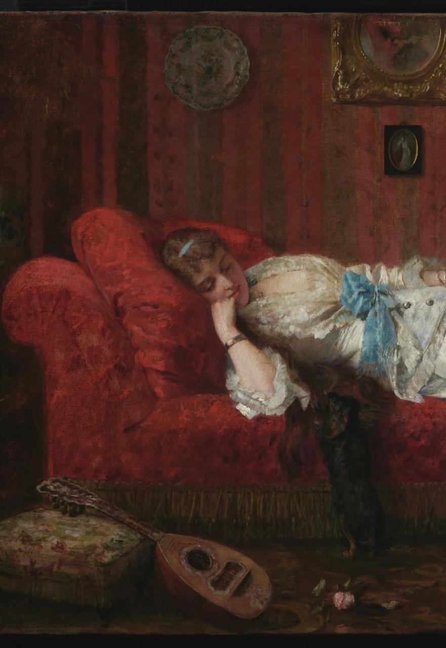 题图为 Young Woman Resting in a Music Room by Alfred Stevens