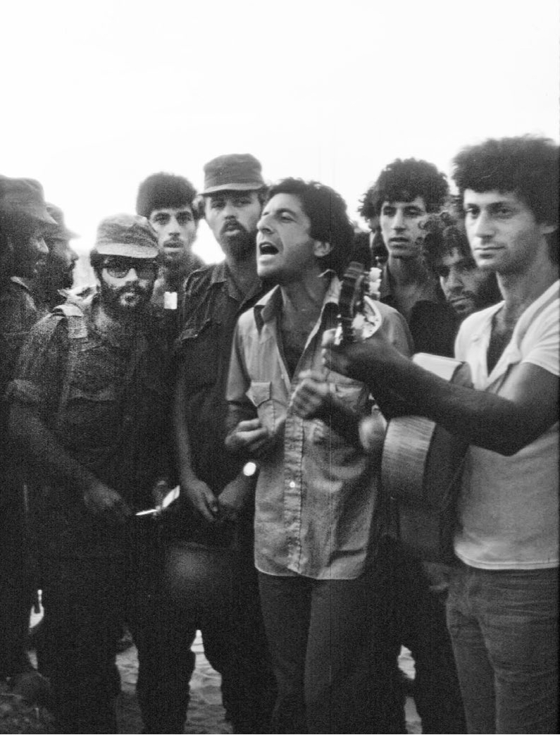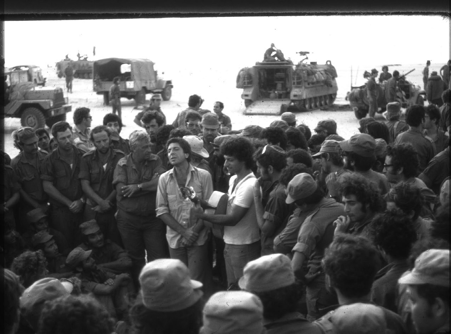 与科恩的夜间邂逅是什洛米一段离奇的记忆,与他同在一个营地的以撒和帕齐对此事却毫无印象。大家记忆中的表演是在不久之后,可能是第二天,在已占领的法伊德空军基地附近的一个十字路口。军队推进到非洲后,开始切断还滞留在运河以色列一侧的敌军,沙龙此时在这里设立了他的师部。没有人记得科恩是怎么过来的,只记得他突然出现在那里。以撒将此事拍了下来。