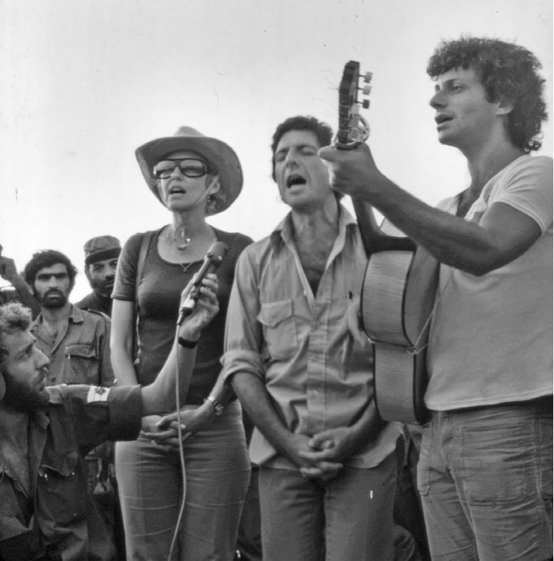 科恩和乐队飞过运河,进入以色列刚刚占领的埃及领土,他们离前线已经非常近了。此时战争正处于高潮。