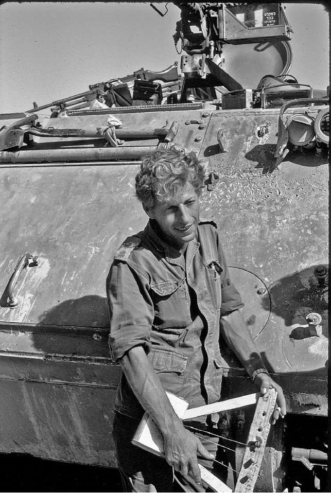 前面叼着烟的是一个叫乔舒亚(Joshua)的军官,帕齐派他在渡河当晚带领第一批坦克到达运河边。这辆坦克被埃及人的炮弹击中,乔舒亚被炸死。为决战而前进的车辆经常不得不在沙地上停车,给从前线带回伤员的卡车让路。一位历史学家说:“一位祭司在路边分发《诗篇》册子,甚至连公开的不可知论者都抢着要。”