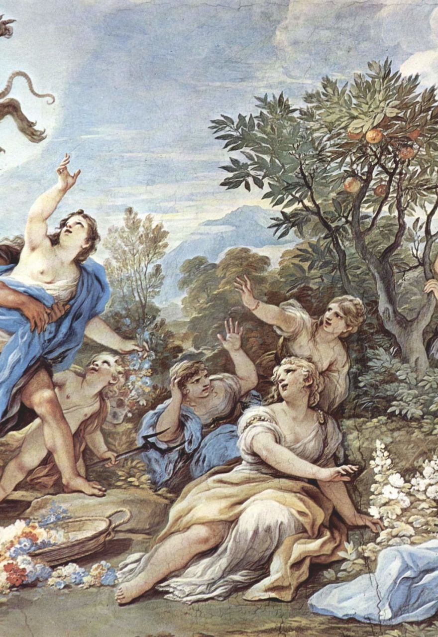 题图为 Rape of Proserpina, detail of cycle of frescoes in Hall of Mirrors by Luca Giordano