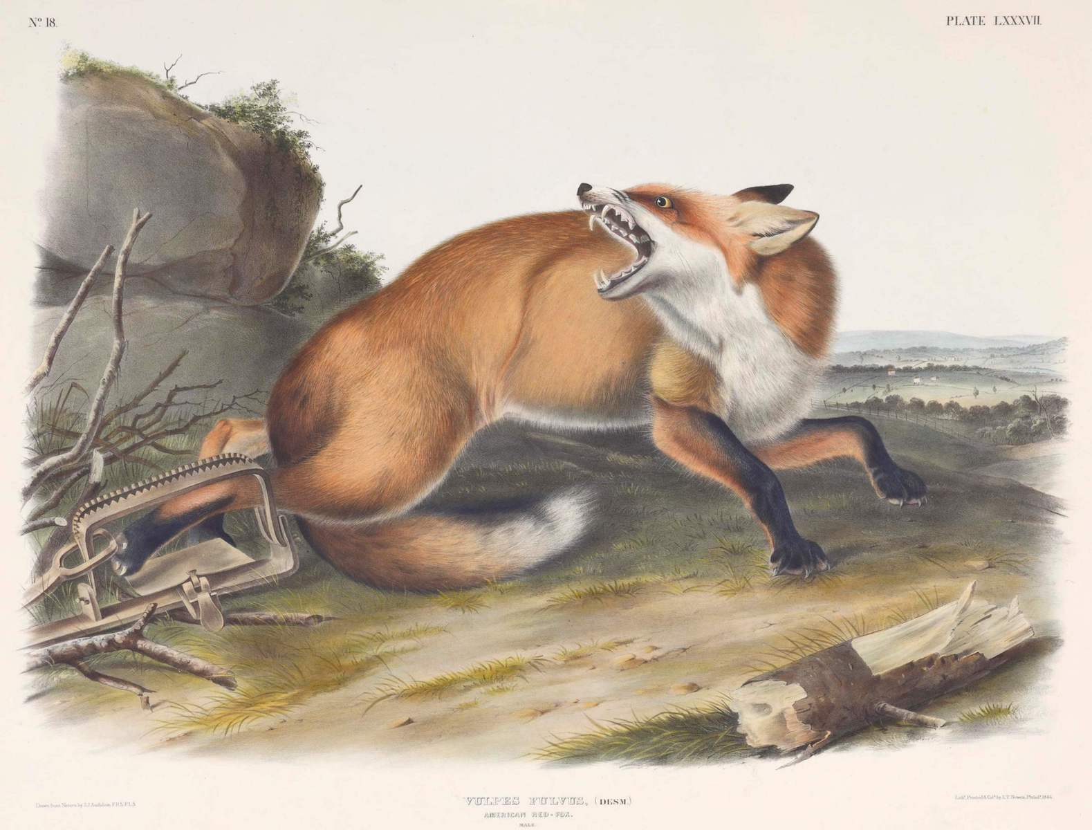 - 《长尾红狐》,1848 年或 1854 年,约翰·伍德豪斯·奥杜邦 绘,美国国家美术馆