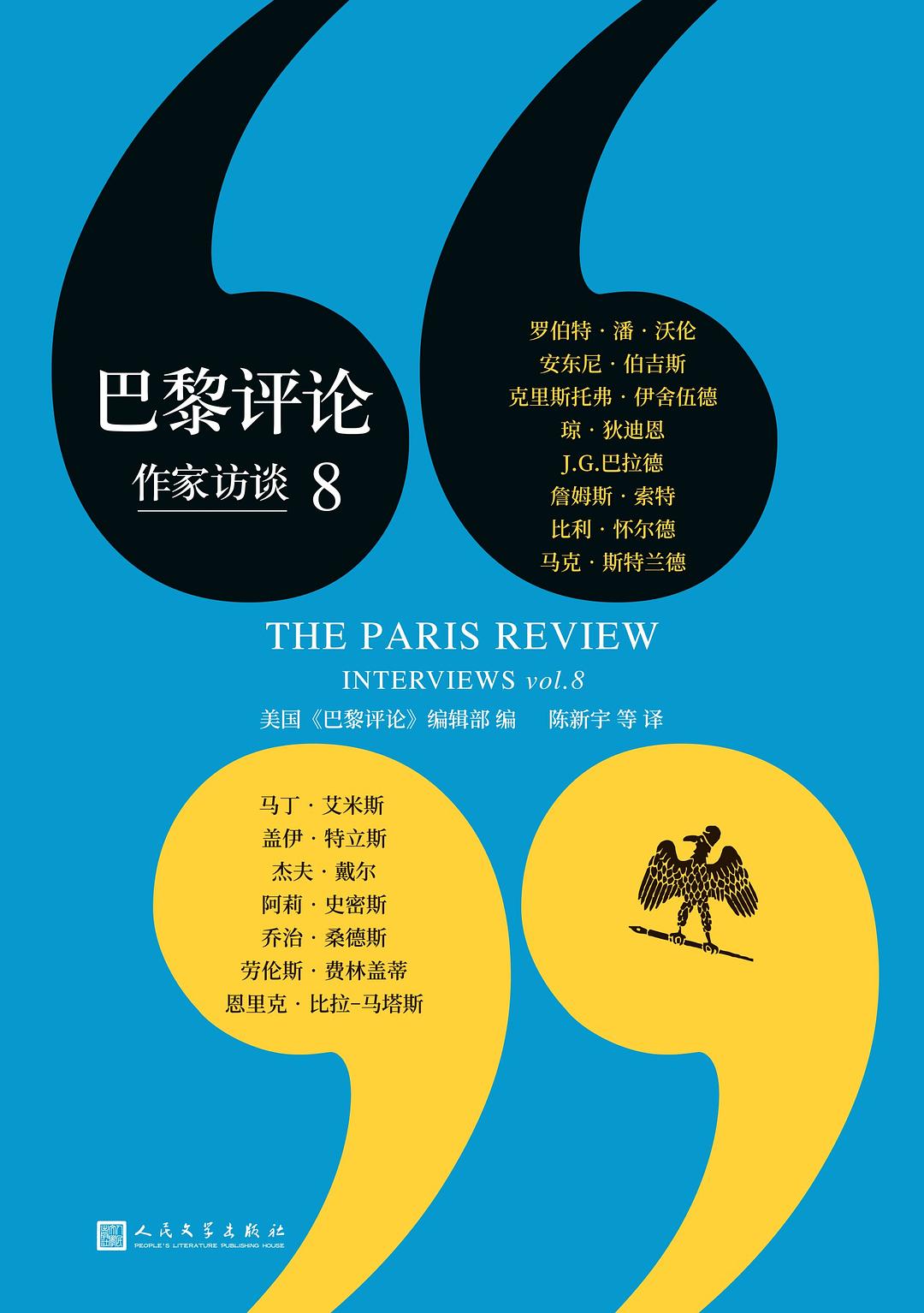 《巴黎评论·作家访谈 8》是《巴黎评论》数字编号系列的第 8 辑,收录传奇文学杂志《巴黎评论》对以下 15 位当代著名作家的长篇访谈:罗伯特·潘·沃伦(《国王的人马》作者)、安东尼·伯吉斯(《发条橙》作者)、克里斯托弗·伊舍伍德、琼·狄迪恩、J.G.巴拉德、詹姆斯·索特(《光年》作者)、比利·怀尔德(影史第一编剧)、马克·斯特兰德、马丁·艾米斯、盖伊·特立斯(《邻人之妻》作者)、杰夫·戴尔、阿莉·史密斯、乔治·桑德斯、劳伦斯·费林盖蒂(《心灵的科尼岛》作者)、恩里克·比拉-马塔斯。