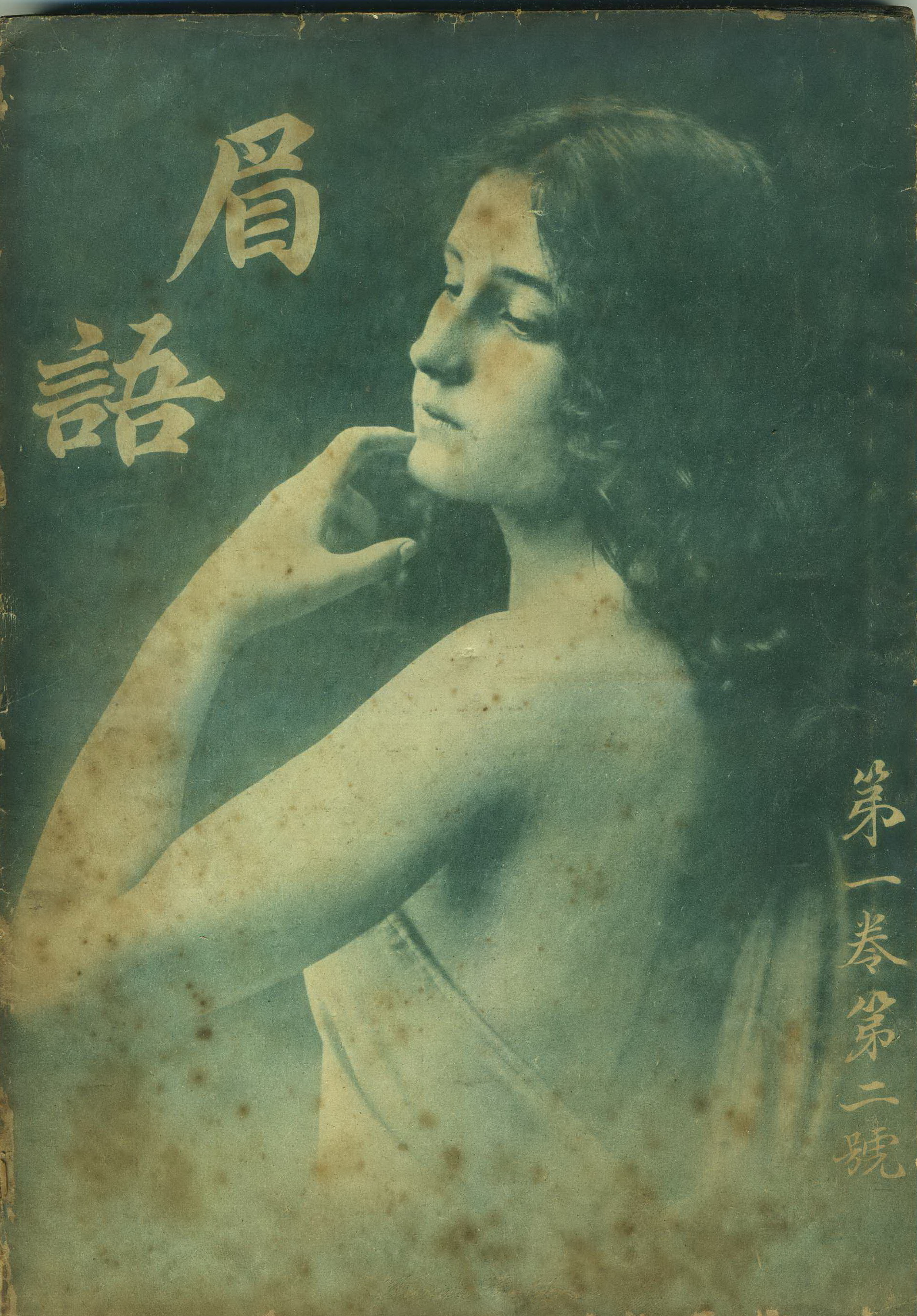 若以此“赤身/ 裸体”的观点看《眉语》创刊号的裸体美人封面,其乃是同时穿着了中西文化与艺术表现的双重“衣饰”。就第一个层次而言,此立姿裸女与西方古典裸体画的横卧裸女较为不同,而与 19 世纪照相技术所开发的立姿裸女摄影较为贴近,而此摄影美学形式乃同时贴挤了希腊罗马时期裸女雕塑(此亦有评者称此《眉语》封面乃“希腊雕像”之由),故此裸体绘画之不只为绘画,乃在于摄影与雕塑之“穿历史”贴挤。就第二个层次而言,此中国裸女绘画之“中国”,不仅在于画中女子的面貌发色,更在于画面本身的“气韵生动”,从裸女的身体姿势线条(从手肘、身躯到发梢)观之,再加上透明纱巾流动飘逸的方向,基本上此“气韵生动”乃是由上往下的逆时针方向流动,无光源点,无物体阴影,却有西方绘画传统所无的气流轨道。若以此创刊号的中国裸女绘画封面与《眉语》第二期的西方裸女(仅裸肩背)侧面摄影封面相比较,当更可清晰辨别其在人体写实度上的巨大差异,一个二度空间的飘飘欲仙,如梦如幻,头部、身体与手肘手掌尺寸比例略显突兀,一个三度空间的肉感真实,触手可即,身体尺寸比例完美。