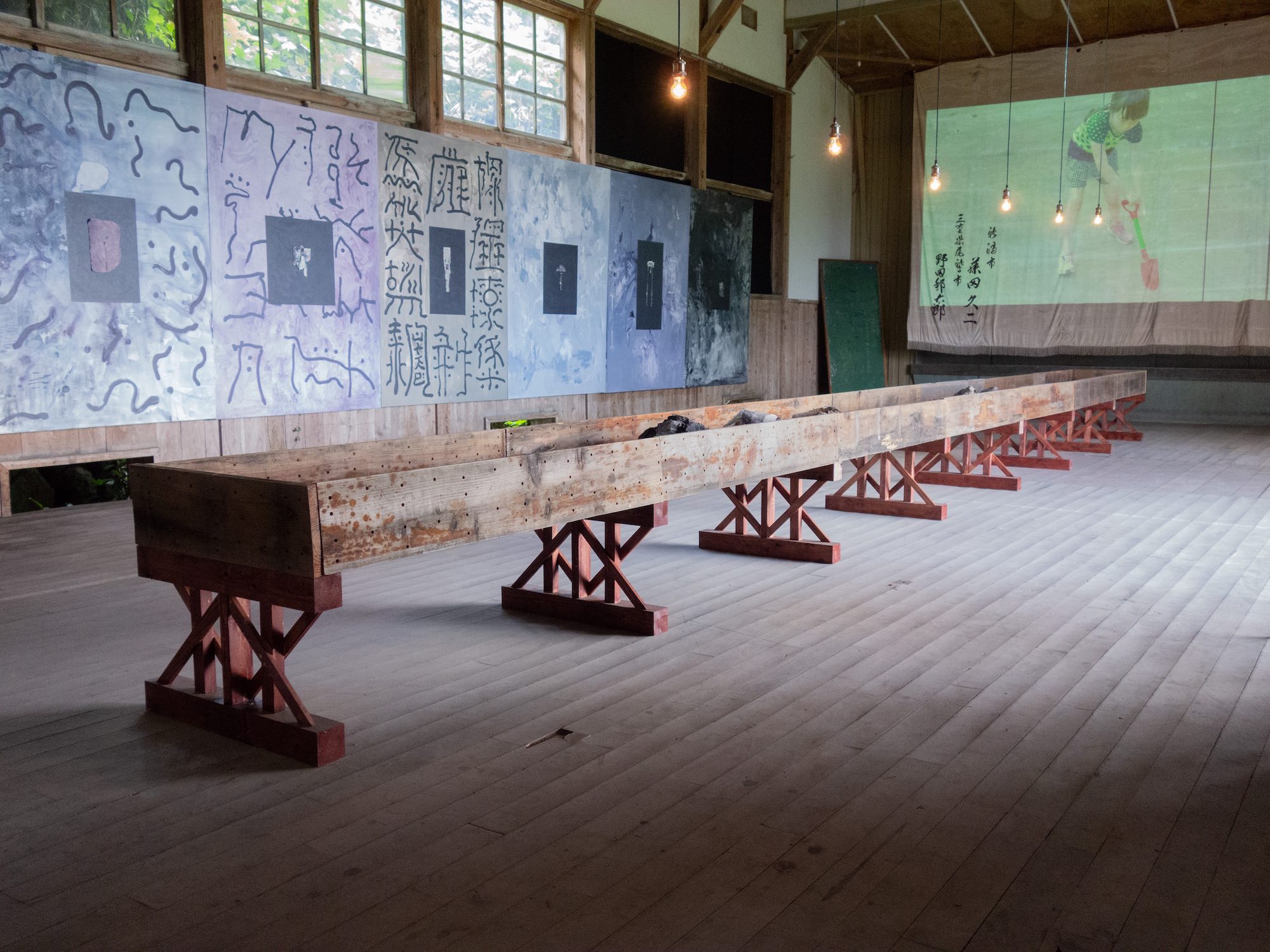 今年的佐渡岛银河艺术节,是在这六年之间规模最大的一次,展期长达两个月(8 月 8 日- 10 月 3 日),参展艺术家约有二十位,包括新潟县三条市出身的画家山井隆介、佐渡岛出身的竹工艺家本田青海以及现居佐渡岛的美国作曲家 Terry Riley,从岛外也有参加著名摄影师本间隆、恐怖漫画家楳图一雄、大阪出身的女画家 Deki Yayoi 等,每位艺术家的作品背景都和佐渡岛的历史和自然有关。因为岛内并没有所谓的美术馆,这次艺术节展出于当地神社、寺庙、岛民所有的仓库或闭校之后空置的校舍等。